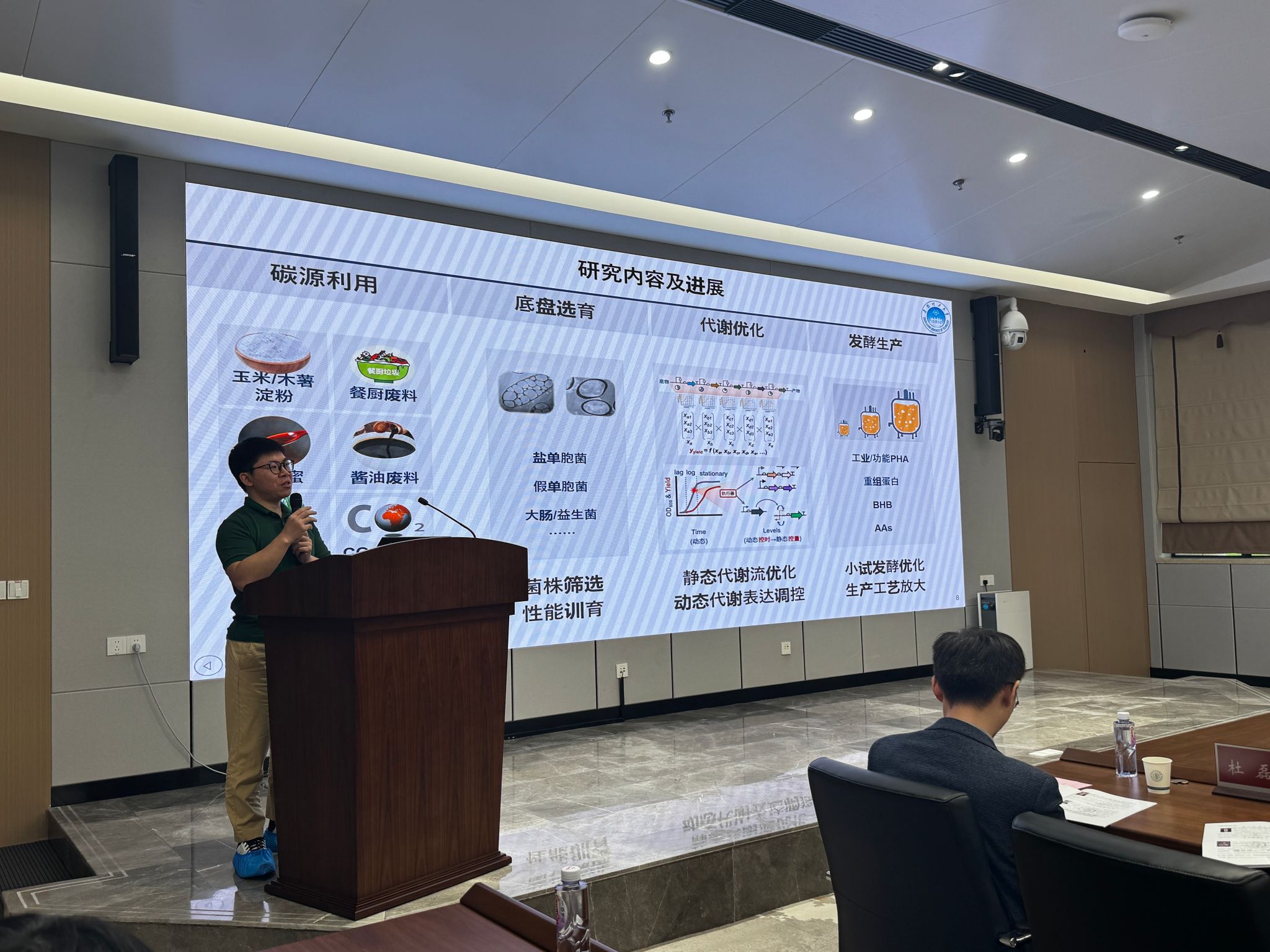 学术报告环节,首先由信息学院黄小罗教授主持。他重点介绍了与会专家在合成生物学基础科学理论以及产业应用方面的创新突破与成就。中国科学院深圳先进技术研究院高翔副研究员带来题为《化学-生物耦合的人工光合系统》的精彩报告。该团队采用合成生物学与电化学相结合的技术策略,构建人工光合系统以模拟自然光合作用,探索将二氧化碳高效转化为有机物的规模化路径,该技术有望为海洋碳移除提供新方案,助力全球碳中和目标实现。华南理工大学叶健文教授分享了其在生物制造领域的系统性创新成果。其团队聚焦于生物可降解材料PHA的绿色生产,通过对生产菌株的代谢网络进行精细化、模块化重构,成功解除了菌株自身的代谢抑制,并引入了高效的合成通路,将其打造成为一个产能卓越、成本可控的理想“细胞工厂”。他同时详细介绍了团队在技术孵化、中试放大以及工业生产等下游应用领域取得的突出成绩,充分展现了合成生物学在推动绿色工业和可持续发展中的巨大潜力,赢得与会专家好评。