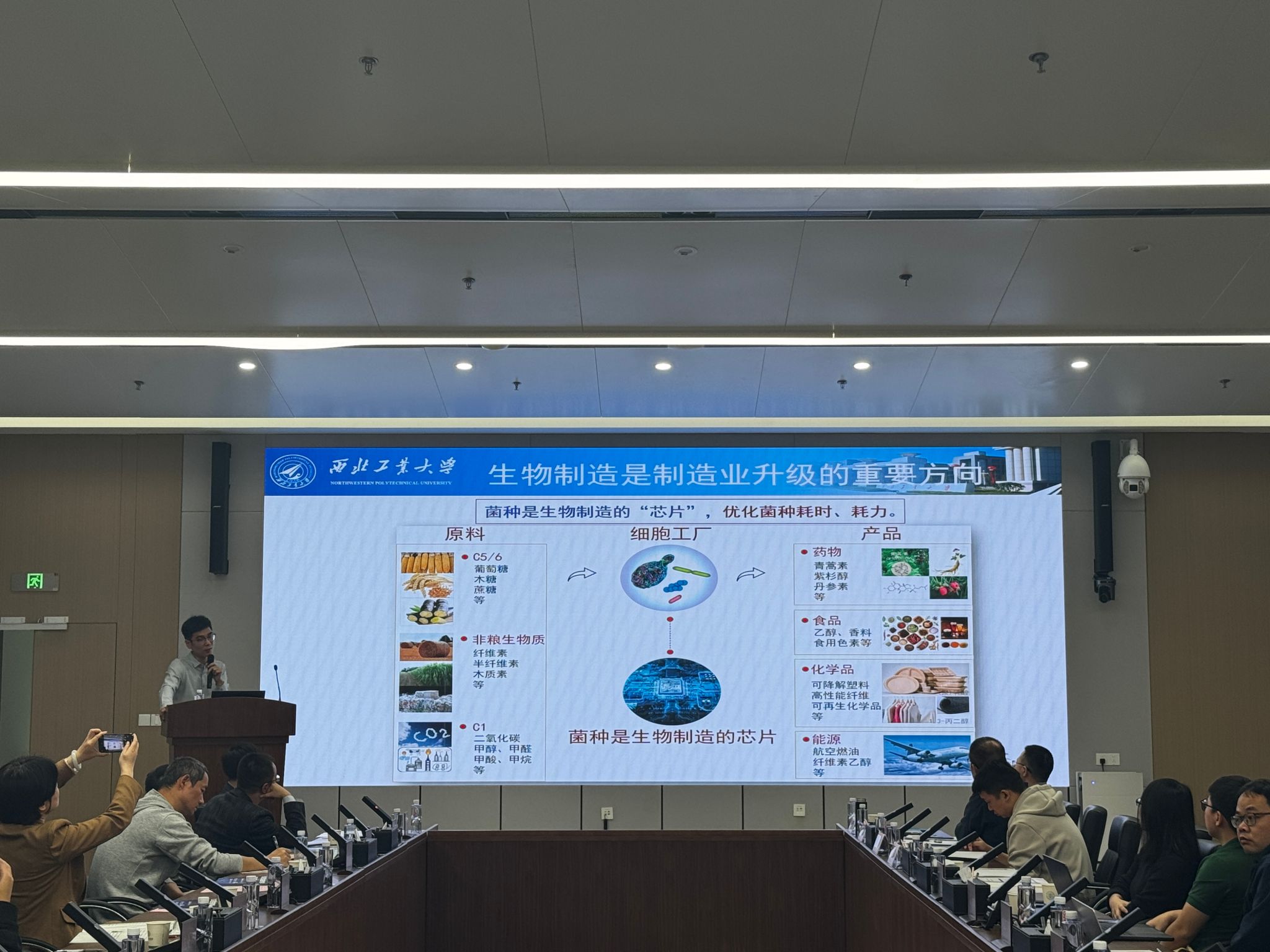 论坛最后,华中农大生命科学技术学院副院长彭东海教授系统阐述了其团队在微生物资源发掘与利用方面的创新体系。他们的工作在微生物资源的深度挖掘、科教产一体化的人才培养模式以及高价值专利的转化与产业孵化等方面形成鲜明特色,获得与会专家的高度赞扬。报告结束,彭东海教授进一步介绍了华中农大在合成生物学领域的整体布局与未来规划,并组织了专家座谈。与会专家围绕合成生物学的未来发展展开了深度对话。与会专家对华中农业大学的合成生物学发展布局给予一致肯定,并围绕学科方向、高端人才引育及产业转化创新等关键议题,提出富有建设性的指导意见。