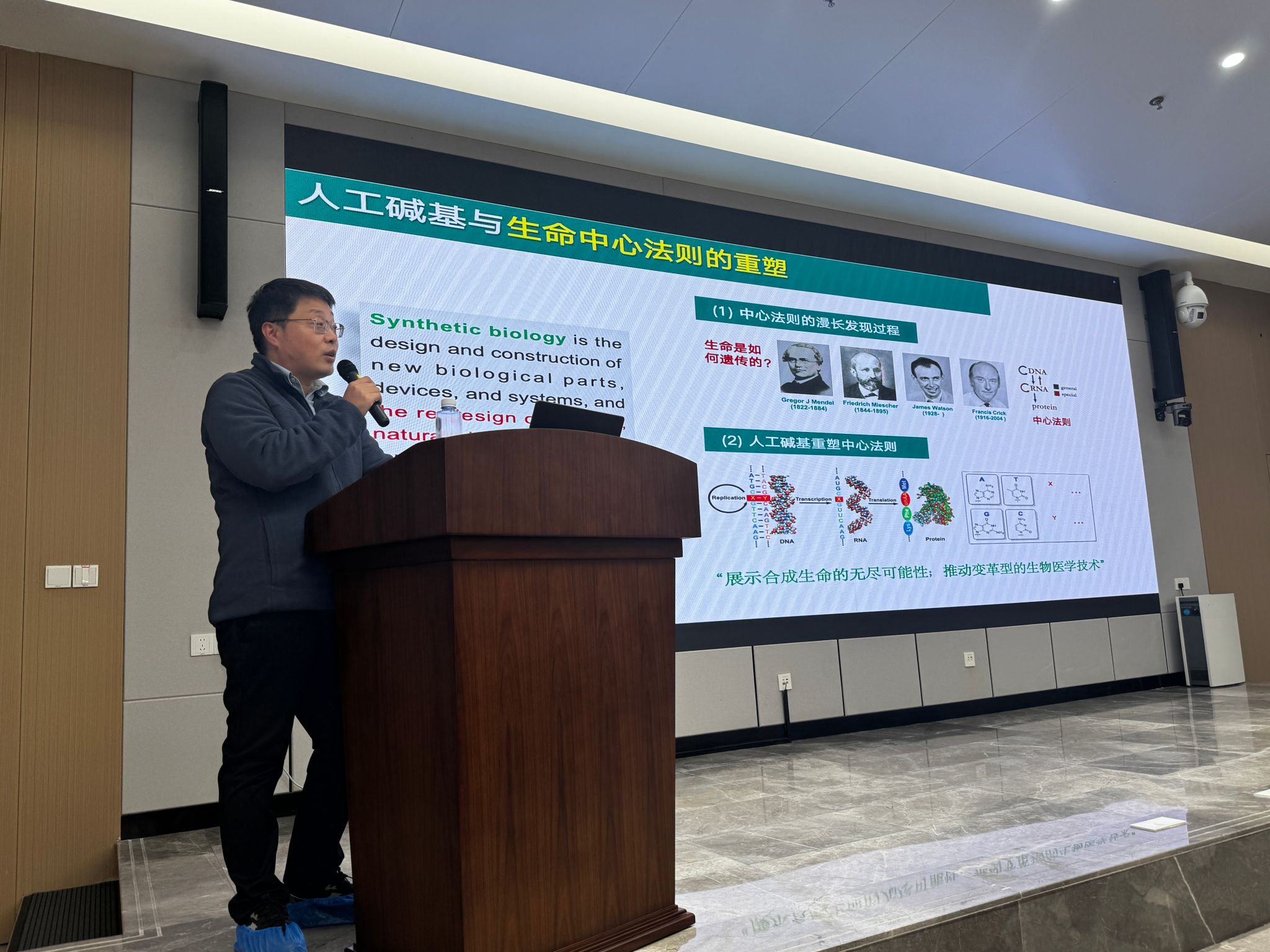 信息学院胡晓攀教授带来题为《基因组最优表达到基因组进化》的报告,他构建了连接基因组表达效率与宏观进化适应性的理论框架,揭示了生命系统在演化压力下如何优化其“语言”表达。这一研究不仅深化了对生命进化规律的理解,也为理性设计高效、稳定的合成基因组提供了宏观指导原则。华中科技大学钟芳锐教授则通过理性设计,成功创制了具有全新催化功能的人工光酶。这类酶能利用光能驱动,在温和、绿色的条件下,实现传统化学催化剂难以企及的特异性催化转化,这一创新为药物合成、精细化学品及功能材料的高效、环境友好制备提供了革命性新工具。河南师范大学李凌君教授的工作挑战了中心法则的传统边界,成功构建了包含非天然碱基对的人工遗传密码系统。这一突破性进展意味着生命体的字母表被有效扩展,为在蛋白质中引入非天然氨基酸、创造具有全新功能的生命大分子开辟了无限可能。华中农大生命科学技术学院杜磊教授通过对微生物基因组进行系统性挖掘,精准定位并解析了其合成复杂天然活性成分的基因簇与生物化学路径,这些工作如同破译了一部部微生物“天书”,不仅揭示了自然界合成复杂分子的精妙机制,也为利用合成生物学手段改造和优化这些天然产物、实现其高效生物制造提供了清晰蓝图。