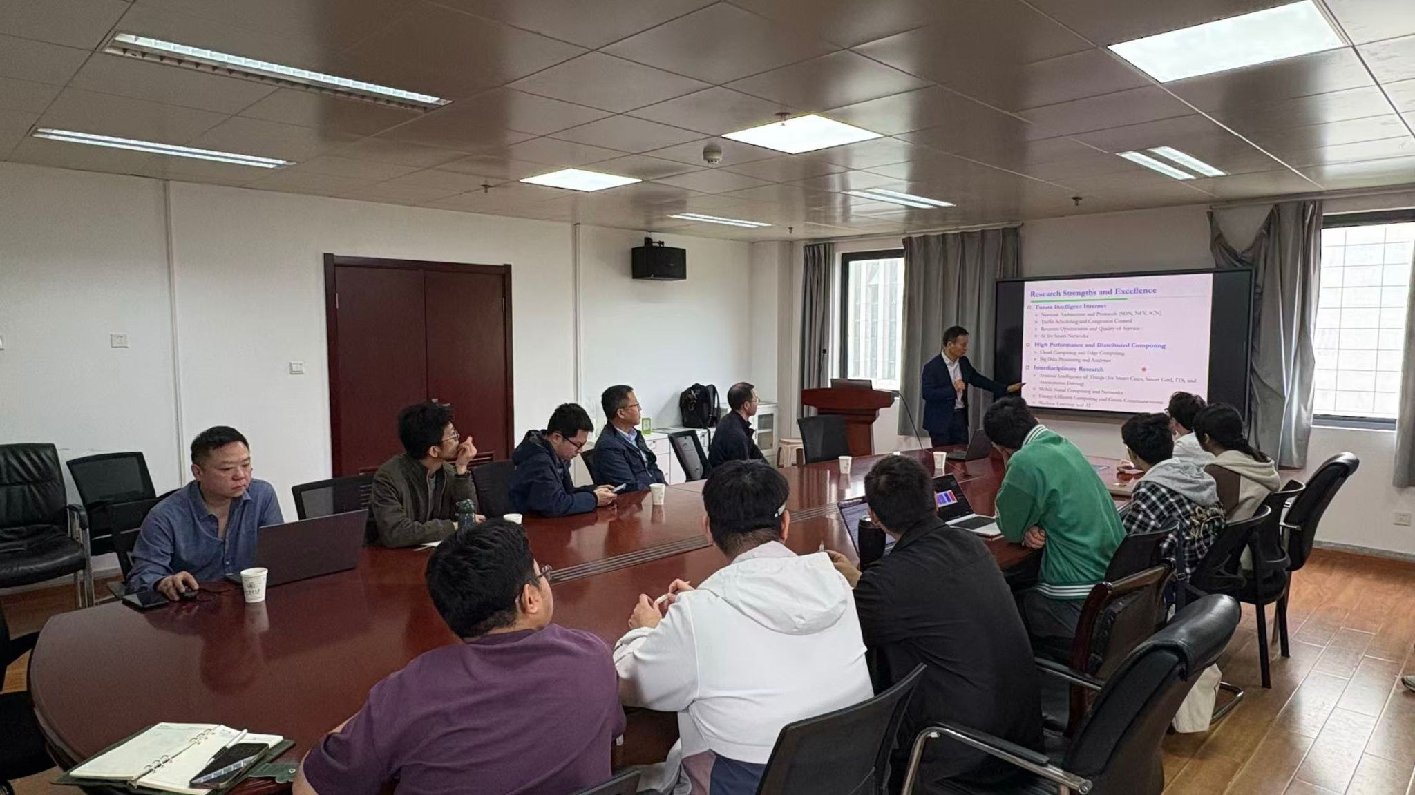 互动环节,现场师生围绕智能边缘网络的实际应用场景、边缘服务器部署成本控制、动态资源调度机制及任务感知服务放置策略等问题展开深入交流。闵革勇教授结合具体案例,对相关技术难点和未来发展方向进行了细致解答,现场讨论氛围热烈,进一步加深了大家对智能边缘网络关键问题与研究价值的深入理解。