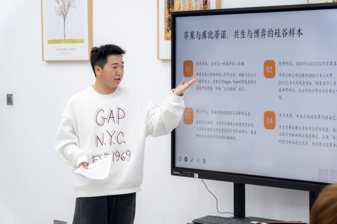 信科2502班的李圣哲同学通过对《硅谷之谜》的精彩分享,对比了硅谷发展和我国的发展。他深入解析了硅谷风险投资的独特生态——从捕捉机遇到投资人与创业者的‘一拍即合’,再到推动技术突破的完整链条。他重点分享了硅谷对人才流动的极度宽容,以谷歌的人才离职机制为例,说明自由流动如何激发创新活力。在分析硅谷优势时,他强调,正是‘风险与机遇并存’的环境,以及叛逆、自由、自主的创新土壤,造就了这片科技热土的持续活力。最后,他结合我国当前科技发展的现状,介绍了本土科技追赶的机遇与挑战,引发在场同学对如何立足本土实现创新突破的热烈讨论。