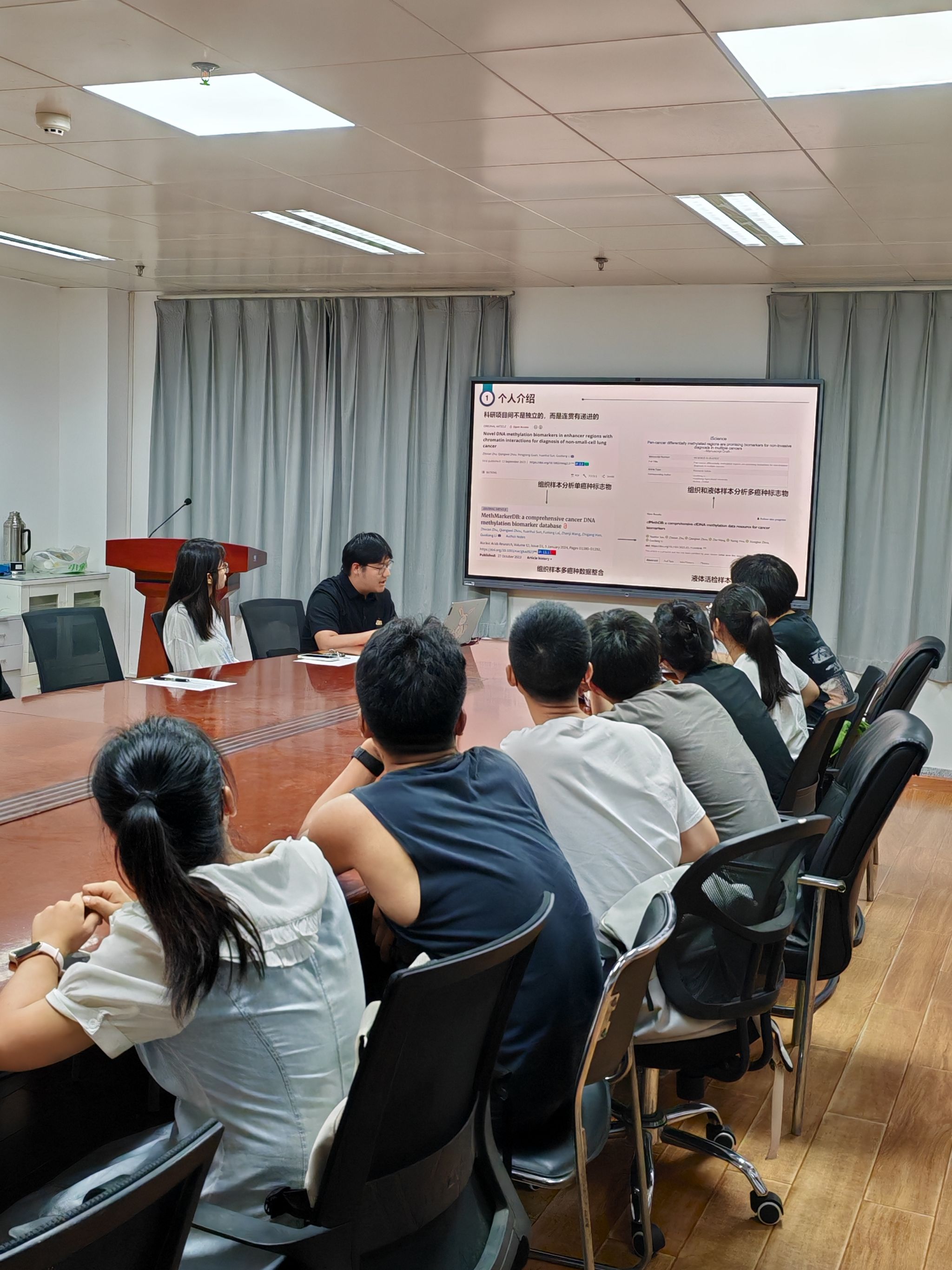分享会上,孙元辉结合自己在DNA甲基化、宫颈癌组学分析等领域的研究经历,系统介绍了科研项目的递进关系——从单癌种标志物研究到多癌种数据整合,再到液体活检样本的深入探索。他指出,科研过程并非一帆风顺,而是训练、模仿和独立探索的不断循环,需要通过大量阅读经典文献、积极与导师和同门交流来不断积累思路与方法。