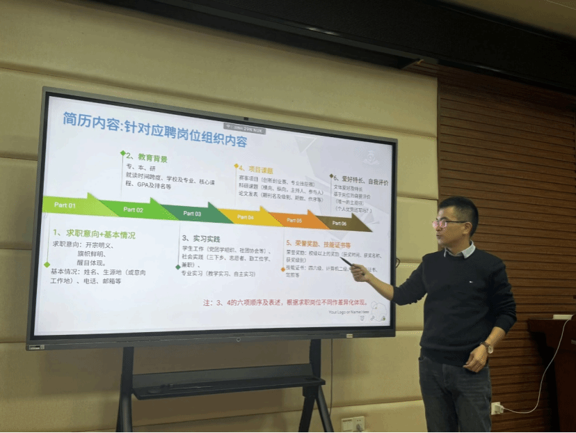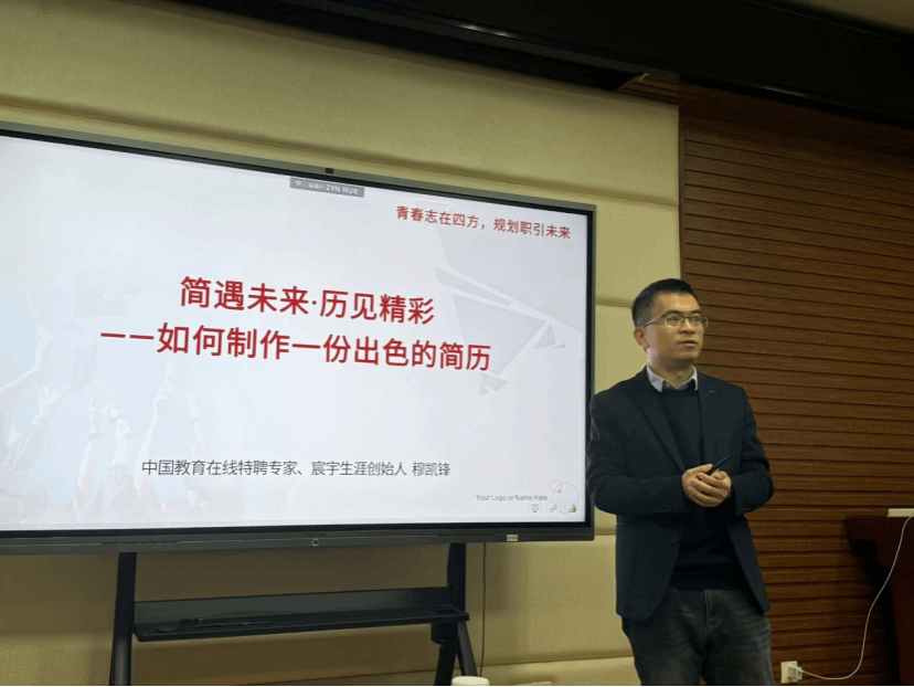 (文字|陈钰轩 图片|熊睿彬,郭芊芊 审核|苗壮)为助力同学们高效掌握简历制作的实用技巧,在求职时期打造出能凸显个人优势的高分简历,信息学院于11月17日晚19:00在第一综合楼B113举办了“求职赋能,简历点睛——解锁简历制作高分技巧”专题活动。本次活动特邀中国教育在线特聘专家、宸宇生涯创始人穆凯锋老师为同学们带来一场深度讲解。