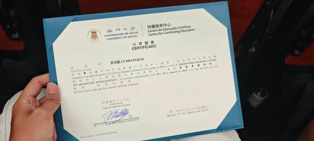 在科研方面,李尚凯从大一开始便加入课题组,开启了 “强化学习入门・从基础到实践” 的探索之路,目前主要研究方向为离线强化学习。为了拓宽视野,2024 年暑假,李尚凯前往澳门大学访学,选修了《人工智能》课程,并取得 B + 的成绩。李尚凯表示:“我的汇报内容得到了澳门大学教师的认可,这不仅是对我科研能力的肯定,更让我坚定了在科研道路上继续走下去的决心。”