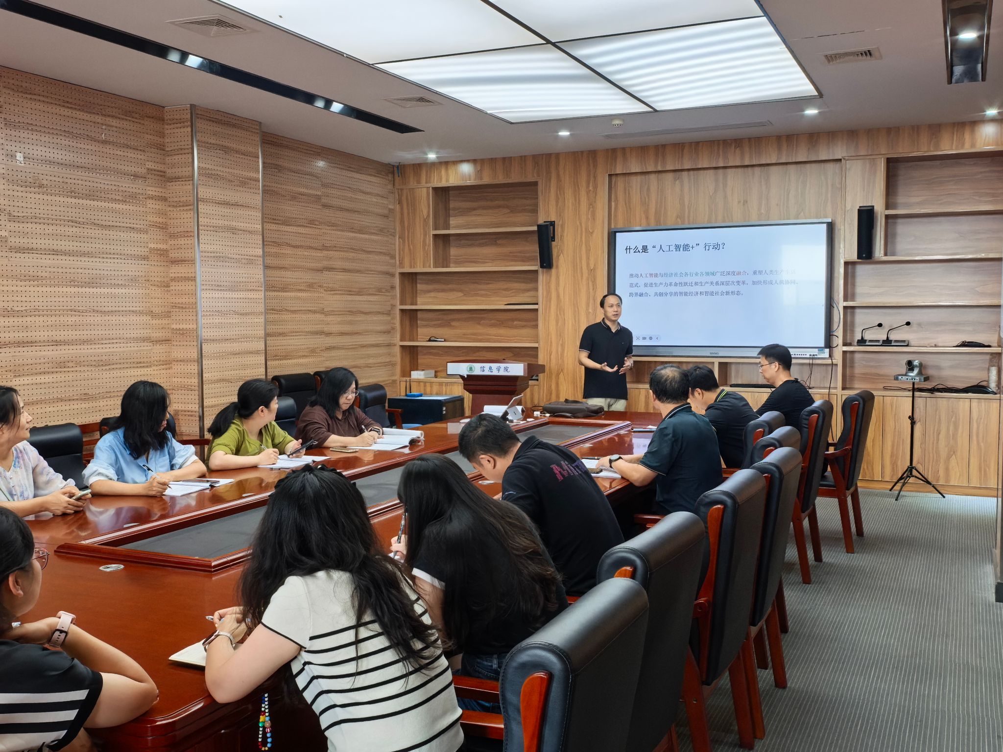 视频学习环节,各党支部、系部教师集中收看了主题视频《习近平作出重要指示强调 锲而不舍落实中央八项规定精神 推进作风建设常态化长效化》以及教师节展播视频学习:陈华癸院士事迹、张献龙院士事迹等内容。在专题研学环节,各党支部在党支部书记(委员)的带领下,结合学院、学科、专业建设实际,深入学习了《国务院关于深入实施“人工智能+”行动的意见》(国发〔2025〕11号),并围绕专题深入交流了学习体会。结合实际,部分党支部就“习近平总书记回信勉励全国特岗教师代表”“习近平总书记在纪念中国人民抗日战争暨世界反法西斯战争胜利80周年招待会上的讲话”等内容开展了集中学习研讨。部分党支部书记面向与会教师讲授了专题党课。