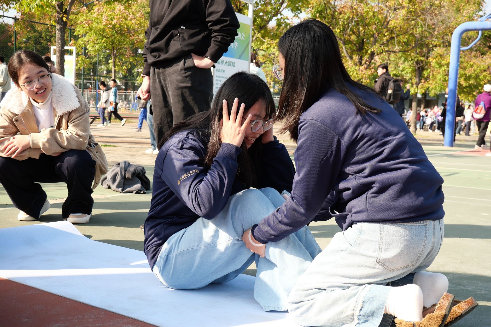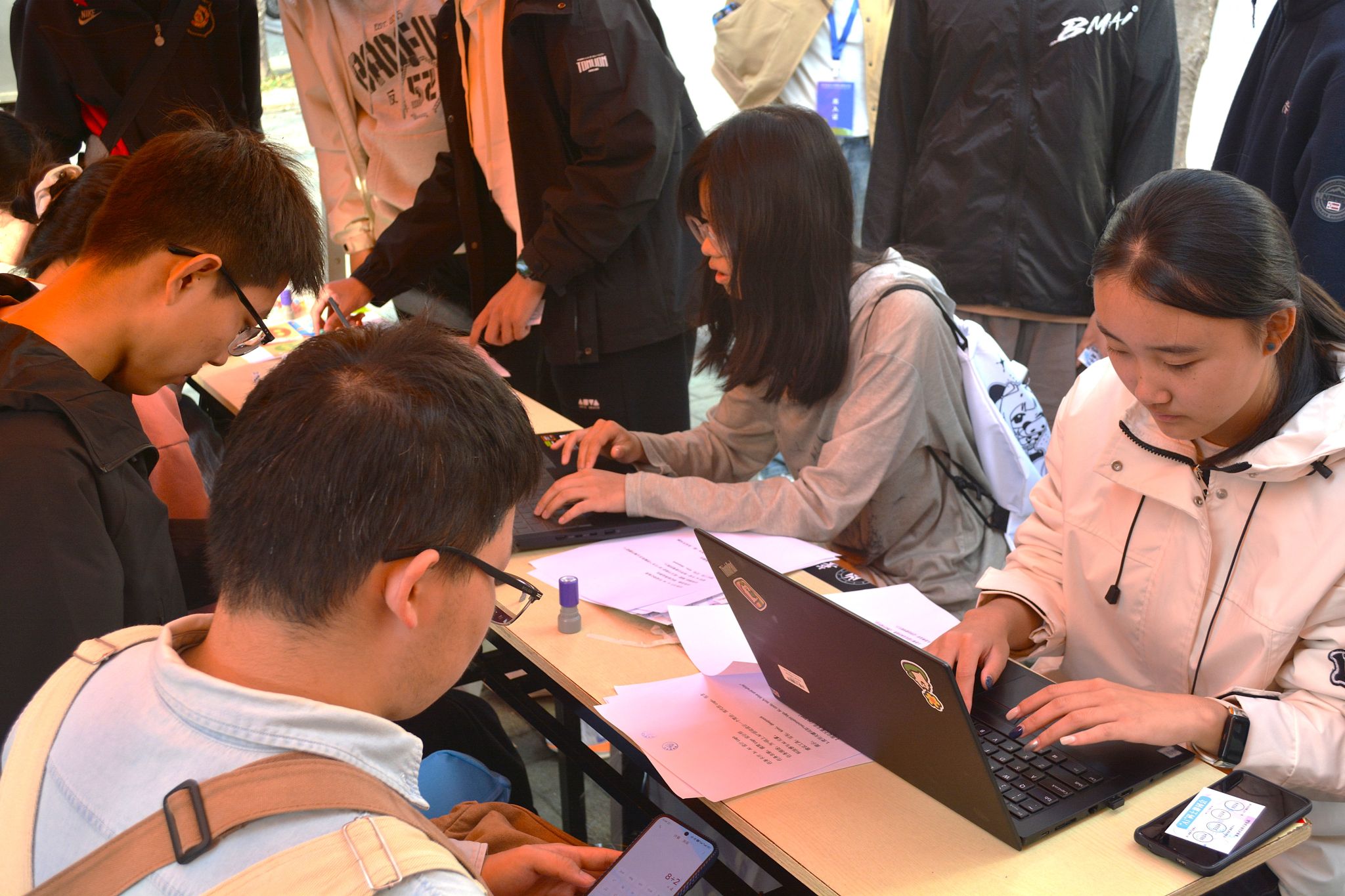 “听到‘ERROR’时我俩都笑场了,赶紧调整姿势重新来!”刚完成挑战的辅导员田昌聪抹着汗说。他和搭档辅导员刘洋以58秒冲过终点,周围瞬间响起掌声。另一边,拿着参与奖的计算机类2503班白晋宇和室友互相调侃:“虽然用了3分多钟,还被‘ERROR’警告了两次,但一起在这儿蹦蹦跳跳,比宅在宿舍刷手机有意思太多,输赢根本不重要!”