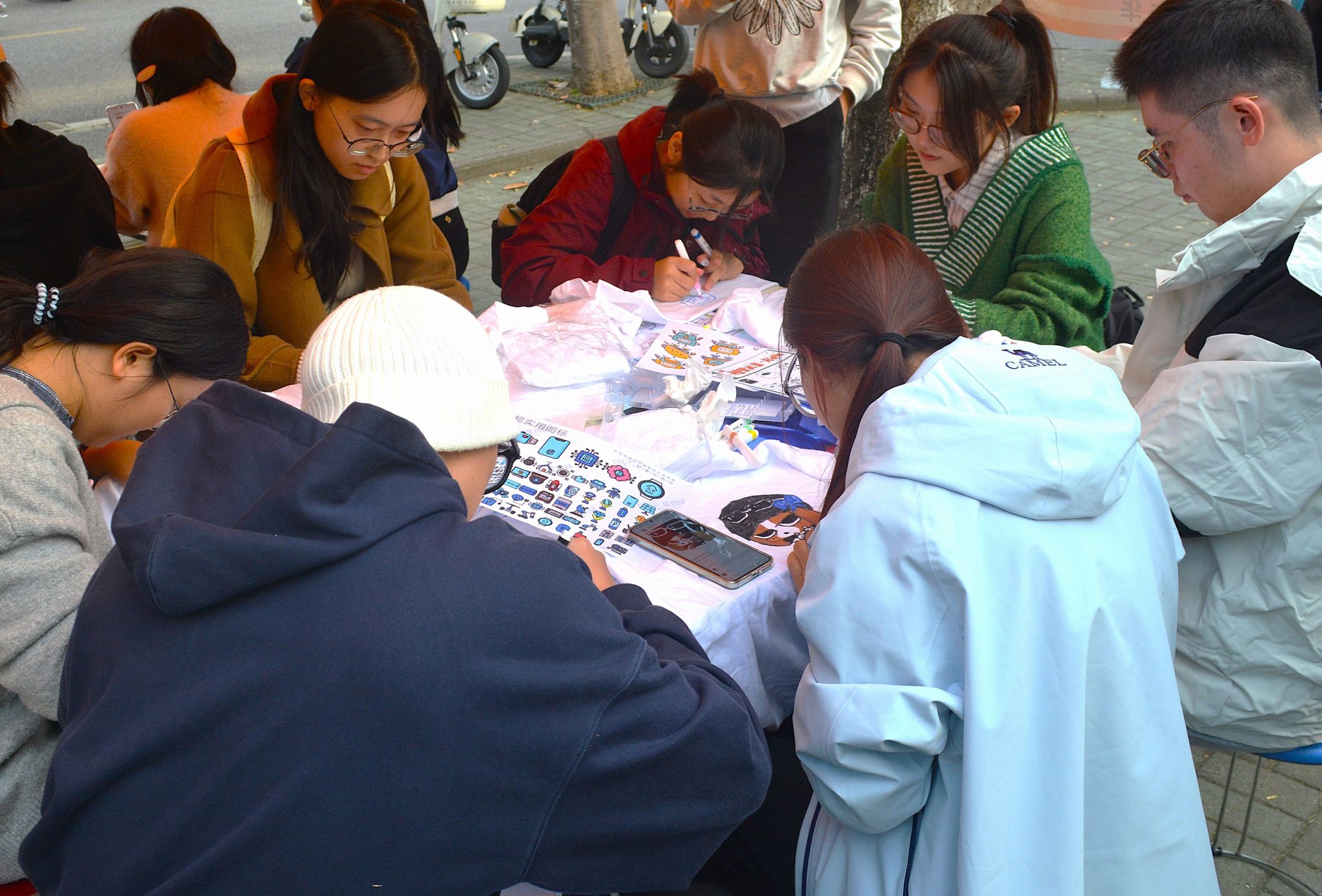 同学们绘制T恤涂鸦(通讯员 李若冰 摄)