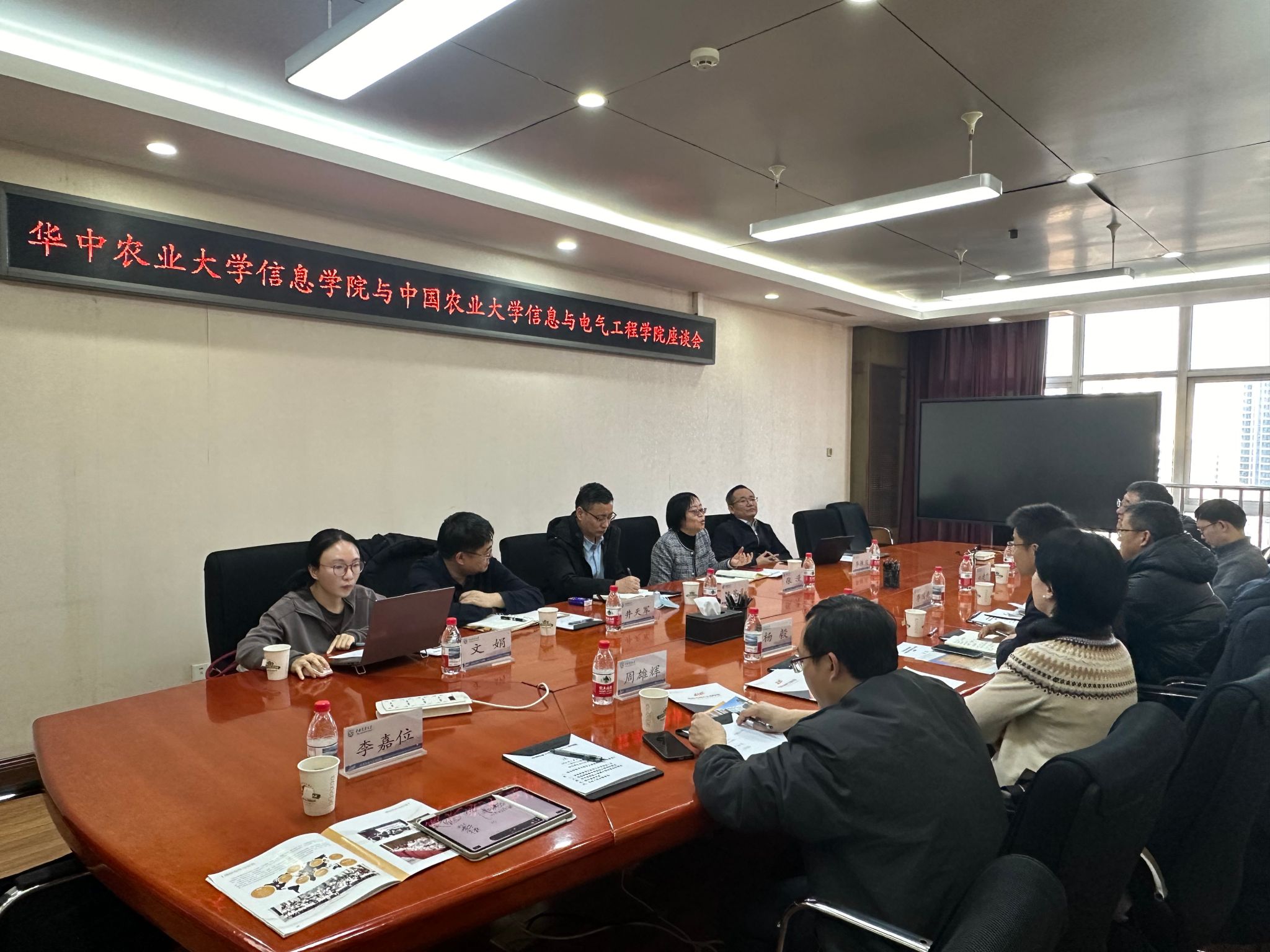 座谈交流环节,双方围绕农业人工智能科研新范式和农业大学信息学科建设展开深入讨论,并交流分享了经验。双方认为,作为同类高校的兄弟学院,面临着相似的挑战和机遇,双方将以此为契机加强交流合作,为国家粮食安全和乡村振兴贡献信息力量。共同参与讨论的还有信电学院文娟老师,我院刘建晓、方亚平、周雄辉、王欢、李嘉位等老师。