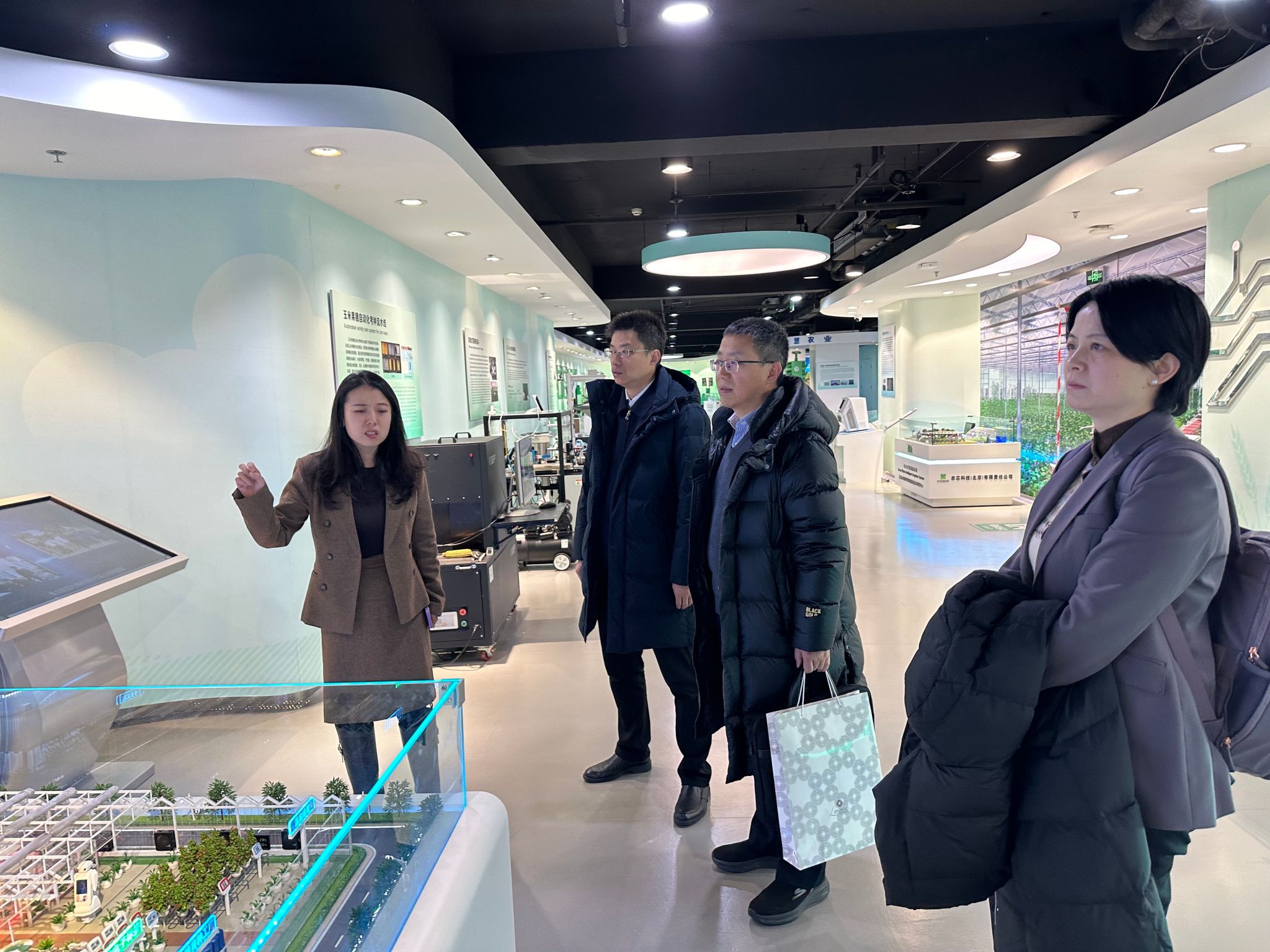 1月28日,向异之、李国亮、杨毅、李嘉位一行赴国家农业信息化工程技术研究中心、国家农业智能装备工程技术研究中心交流访问。中心首席科学家赵春江院士、装备中心副主任张钟莉莉、信息中心孙传恒、吴升、张晗、万钰等热情接待了来访团队,共同参观了中心成果展厅。