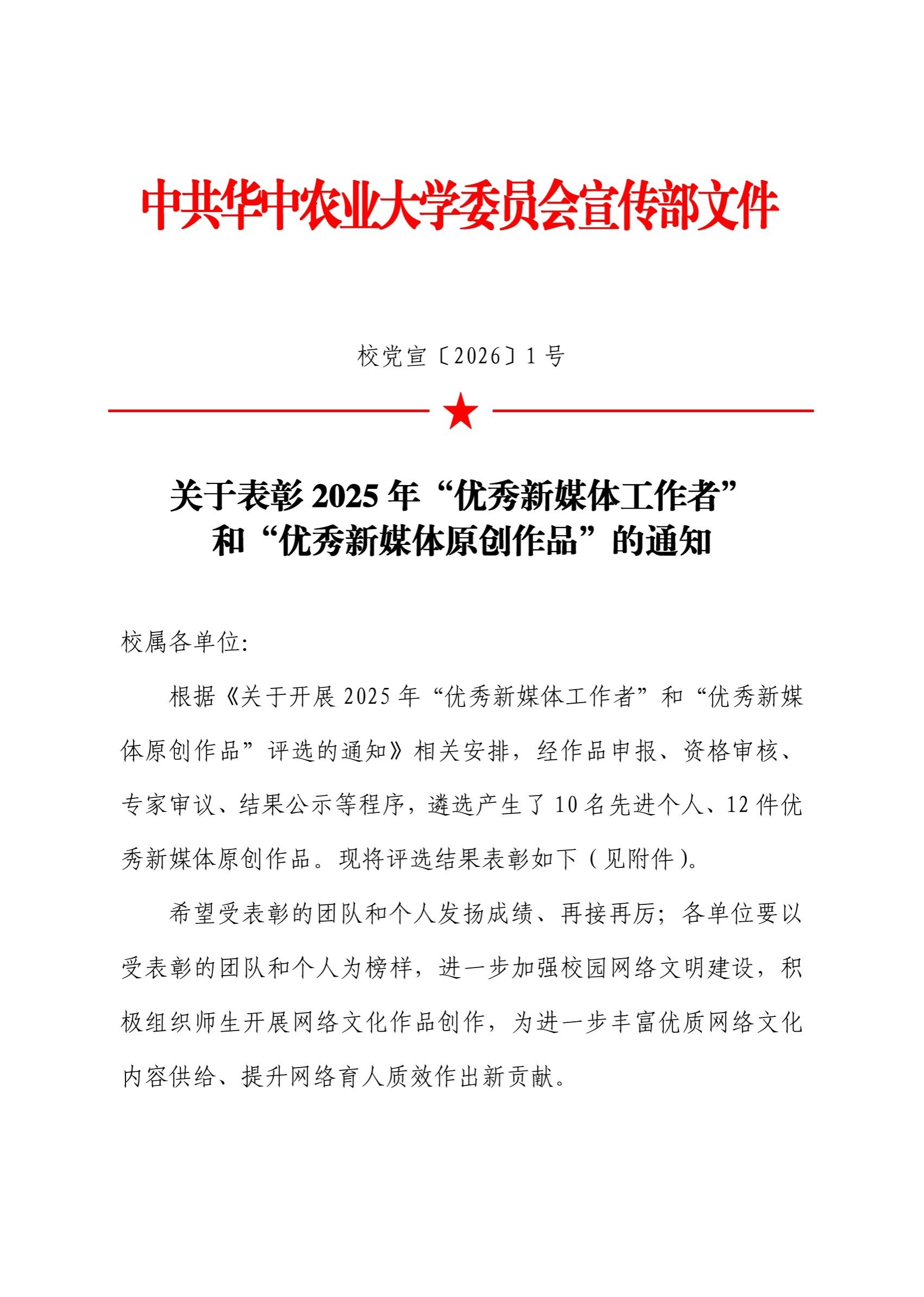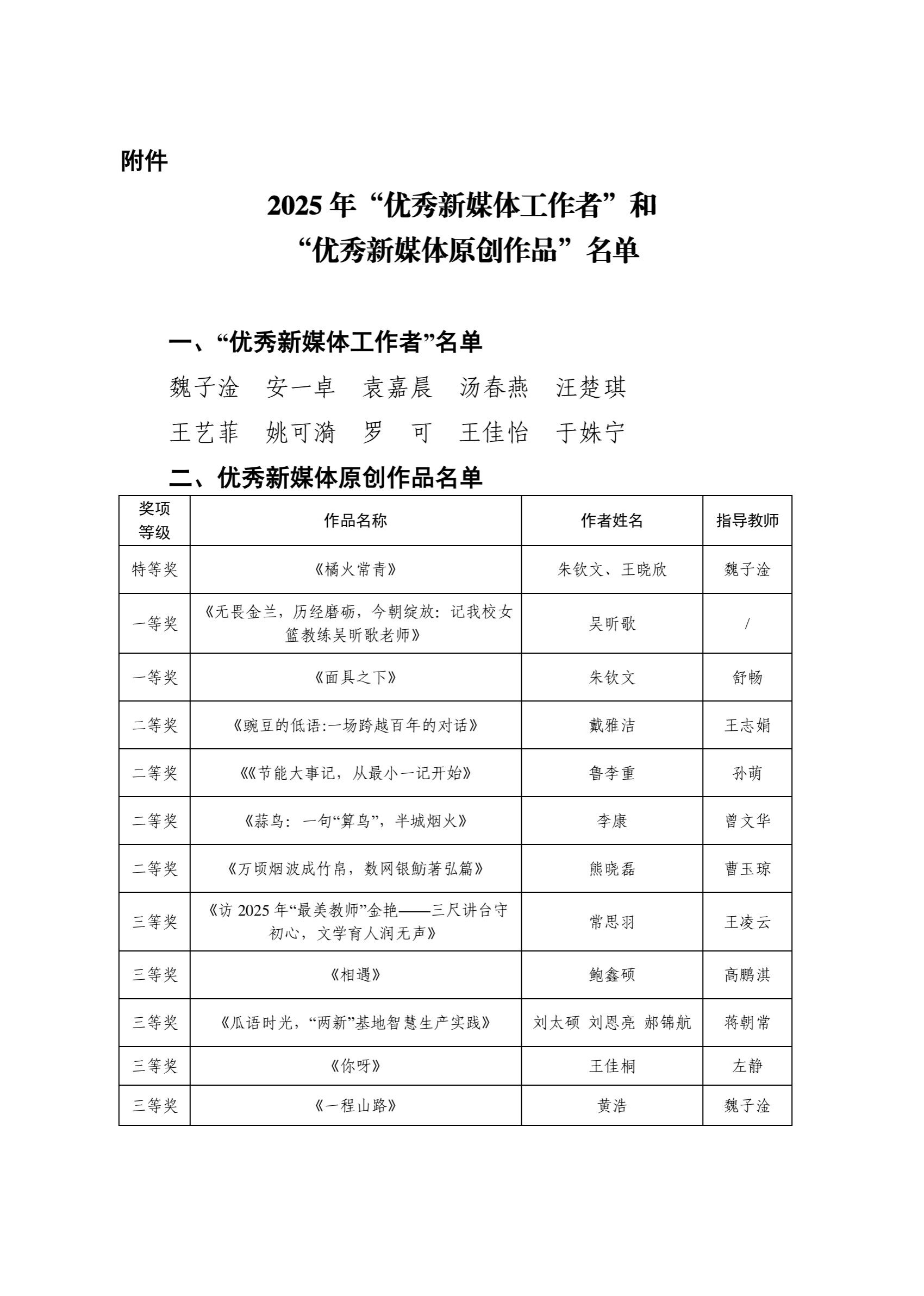 (文字|袁嘉晨 编辑|信息 审核|刘进)近日,校党委宣传部公布了2025年“优秀新媒体原创作品”和“优秀新媒体工作者”评选结果。我院辅导员袁嘉晨获评“优秀新媒体工作者”,学院2025届毕业生原创歌曲MV《相遇》荣获“优秀新媒体原创作品”三等奖。