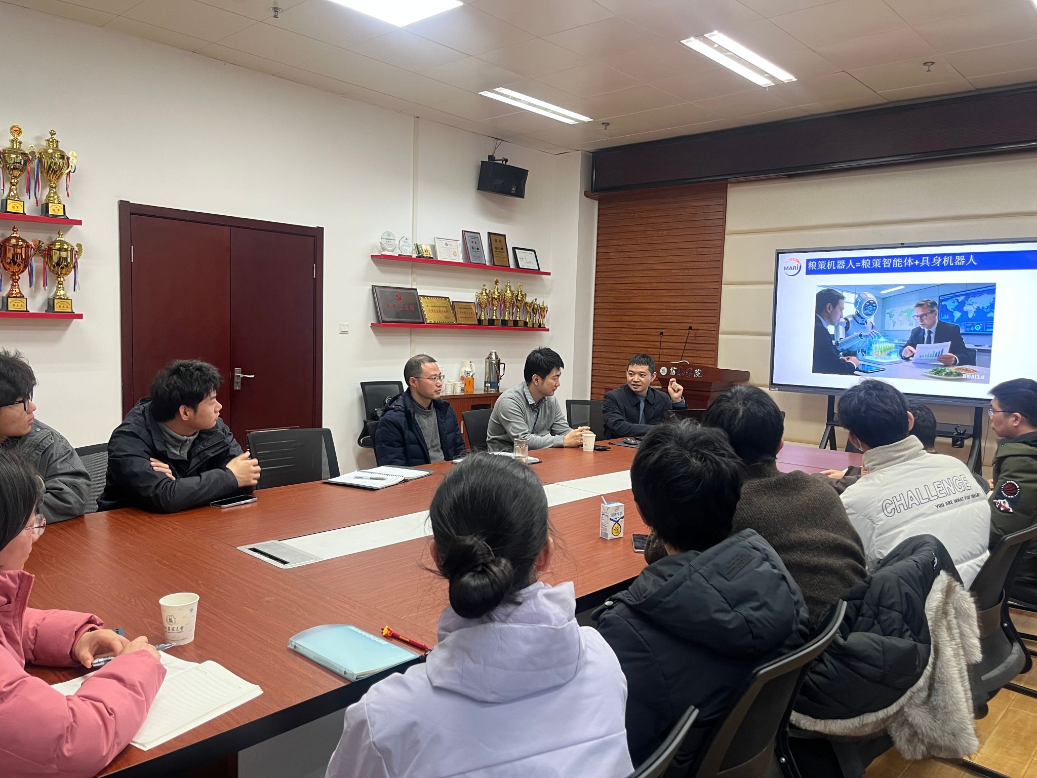 南湖新闻网讯(通讯员 徐士伟)1月15日上午,华中农业大学粮食安全数智治理实验室(以下简称“实验室”)与信息学院开展数智技术赋能粮食安全治理交流会,深入贯彻落实国家粮食安全战略,探讨多学科交叉推动粮食安全数智治理能力建设的路径。实验室李剑教授、熊航教授,信息学院朱容波教授,骨干教师王佳、别丽华、徐士伟、武玲娟等参加座谈研讨。