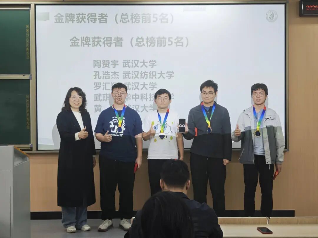 随后,获奖名单通过滚榜形式逐一揭晓,几位老师与ACM成员共同为获奖选手颁发奖品和奖牌并合影留念,全场同学送上热烈掌声。