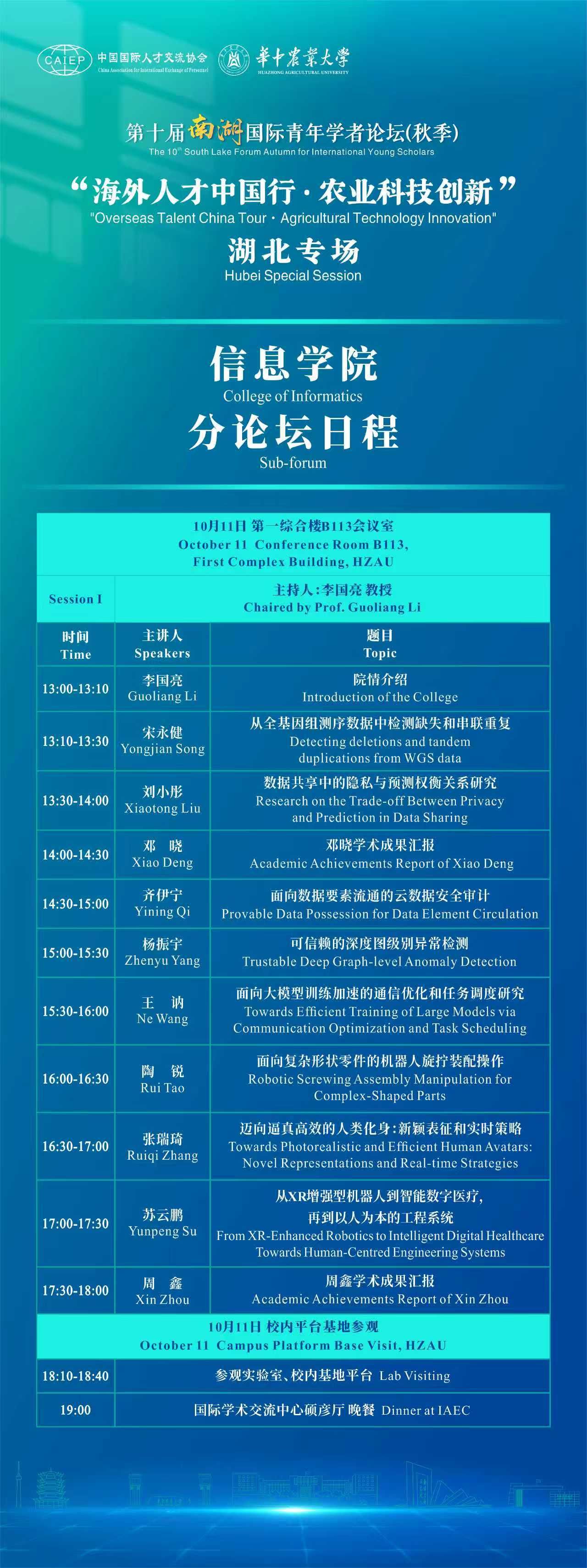 南湖国际青年学者论坛(秋季)信息学院分论坛日程