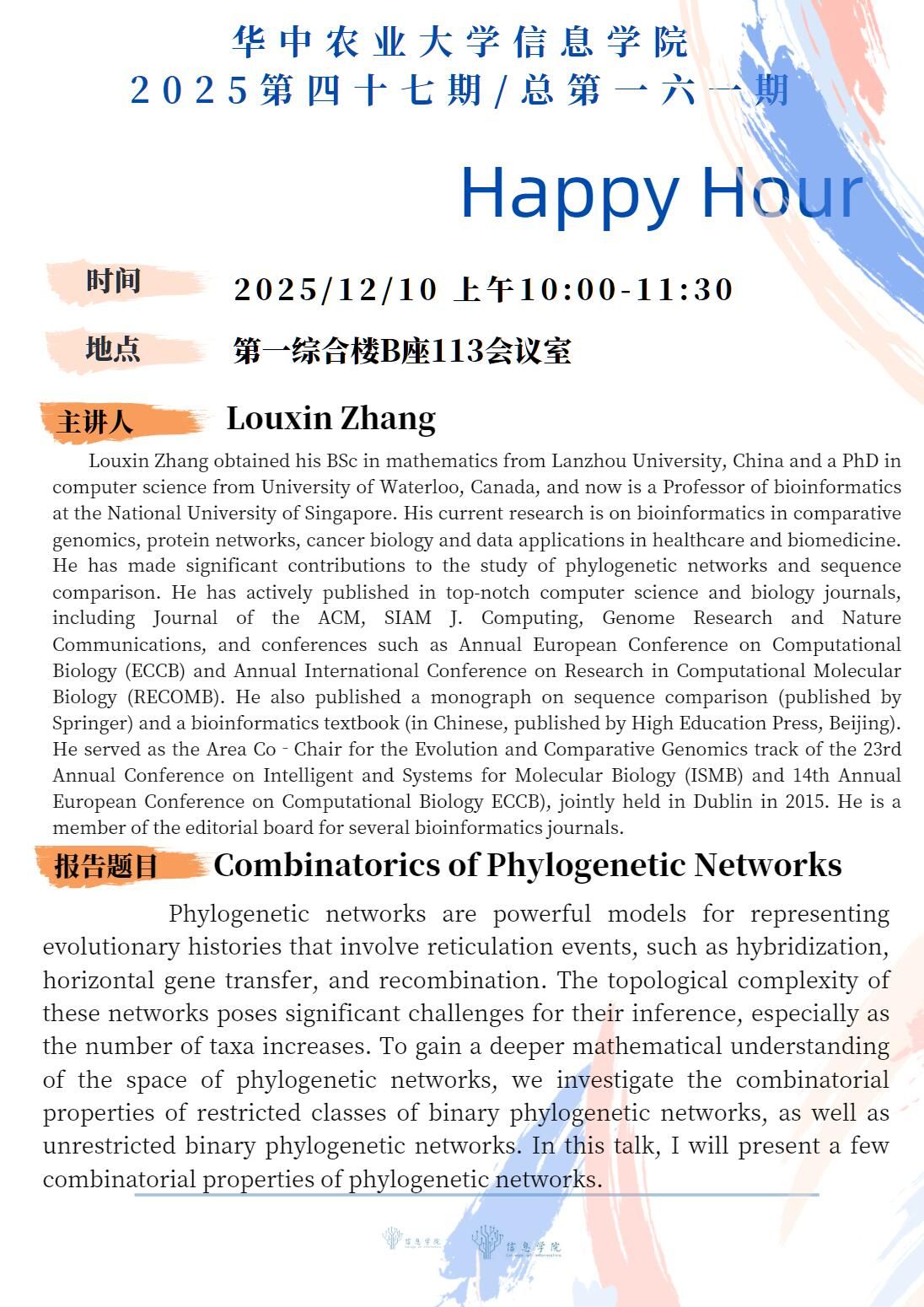 Happy Hour第161期:Combinatorics of Phylogenetic Networks